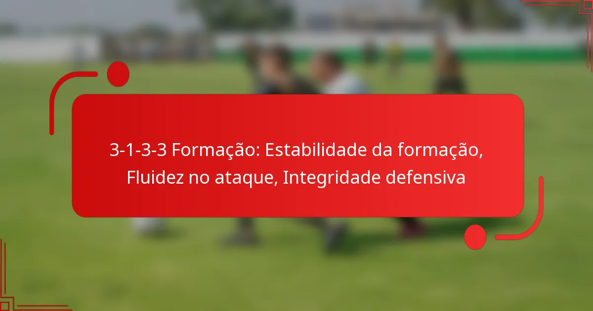 A formação 3-1-3-3 é caracterizada por uma base defensiva sólida com três centrais e um médio defensivo dedicado. Esta configuração melhora a estabilidade, permitindo que as equipas mantenham uma forte presença na retaguarda enquanto facilitam transições para o ataque. Em contraste, a formação 4-4-2 pode, por vezes, deixar lacunas no meio-campo, tornando-se vulnerável durante contra-ataques.
