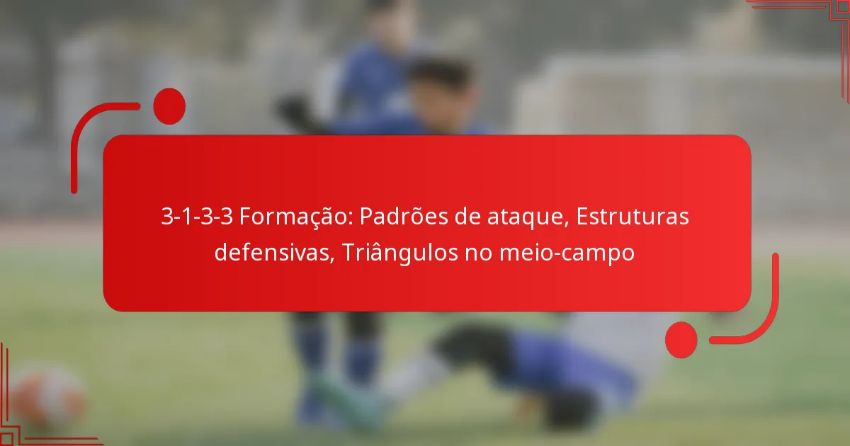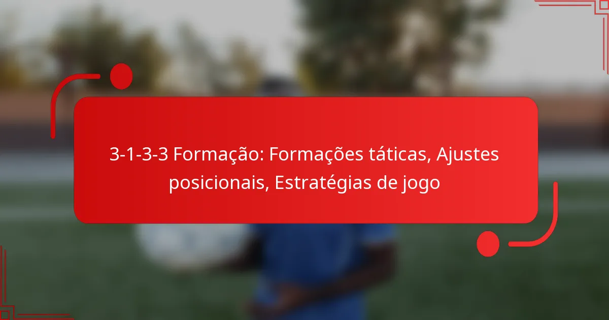A formação 3-1-3-3 é uma configuração tática no futebol que enfatiza uma abordagem equilibrada entre defesa e ataque. Consiste em três defensores, um médio defensivo, três médios e três avançados, permitindo transições fluidas entre as fases ofensivas e defensivas do jogo.